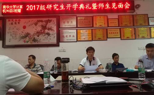 2017年9月10日上午,南华大学计算机学院2017级研究生新生开学典礼暨师生见面会在八教113会议室隆重举行。校党委副书记、计算机学院学科带头人阳小华,计算机学院院长刘振宇、院党委书记肖基毅、副院长何啸峰、院党委副书记卢清华、副院长万亚平,以及全体研究生导师出席会议,2017级全体研究生新生参加会议。会议由万亚平副院长主持。