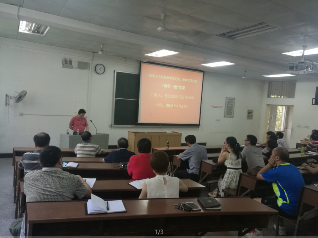2016年6月21日下午,校党委副书记阳小华在8教310室为bet5365首页手机版下载数理学院的全体师生党员上了一堂生动的“两学一做”学习教育第一专题“讲政治、有纪律”党课。