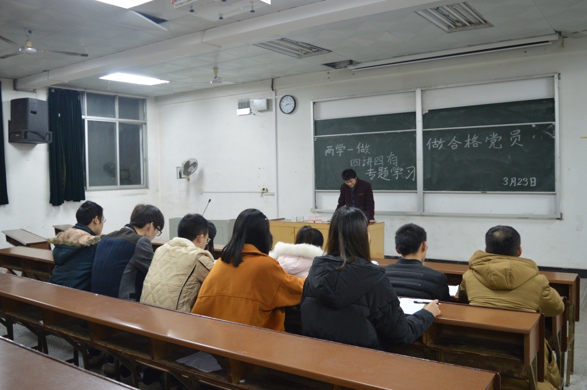 3月23日晚,bet5365首页手机版下载研究生党支部在8教310组织召开了“四讲四有”专题学习交流会。全体党员、预备党员,及入党积极分子参加了会议。会议由党支部组织宣传委员袁鼎主持。