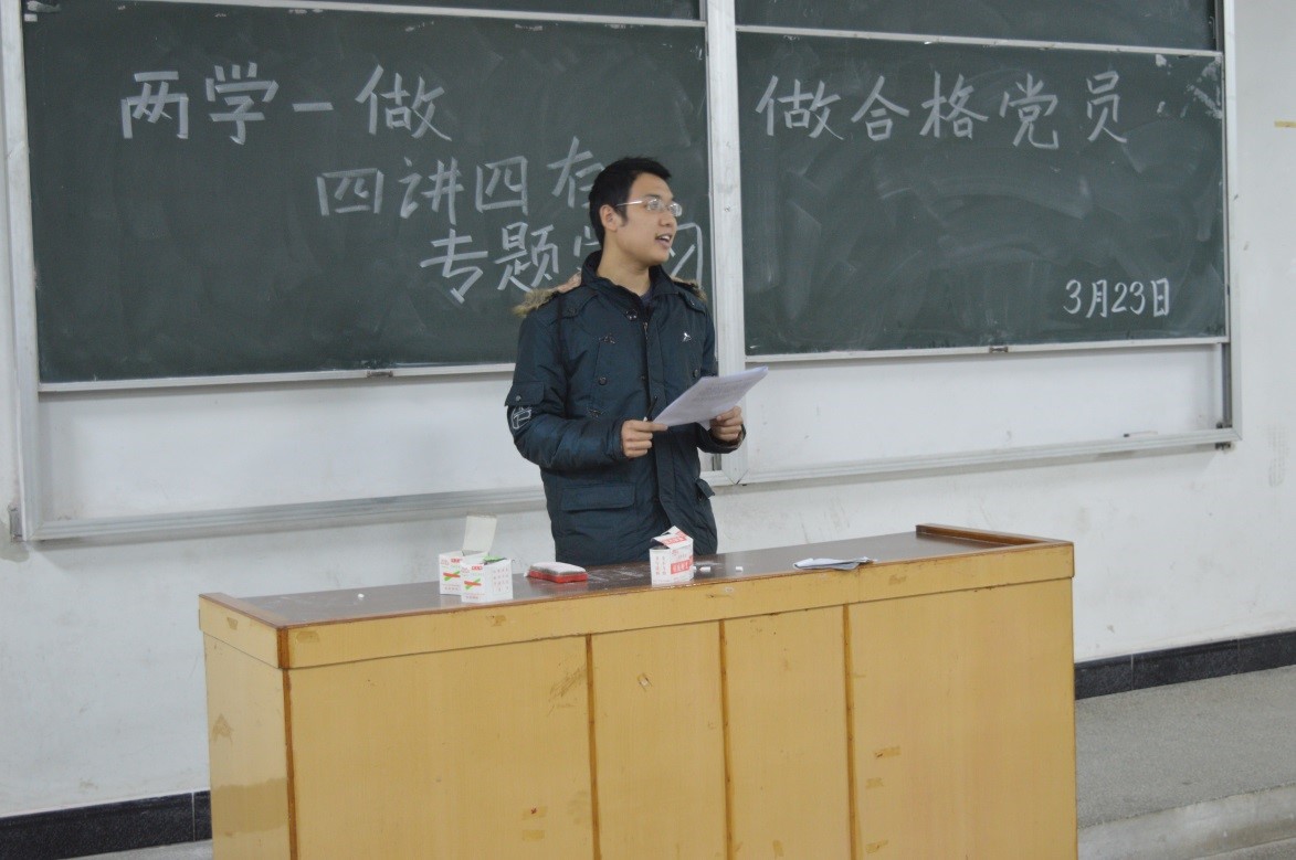 最后,由袁鼎做总结发言,要求学生党员不仅要认真学习党章党规,时刻以党员的标准严格要求自己,以党员的先进性鞭策自己,坚定理想信念,牢记职责使命,做一名“四讲四有”的合格党员,在各方面发挥党员先锋模范作用。