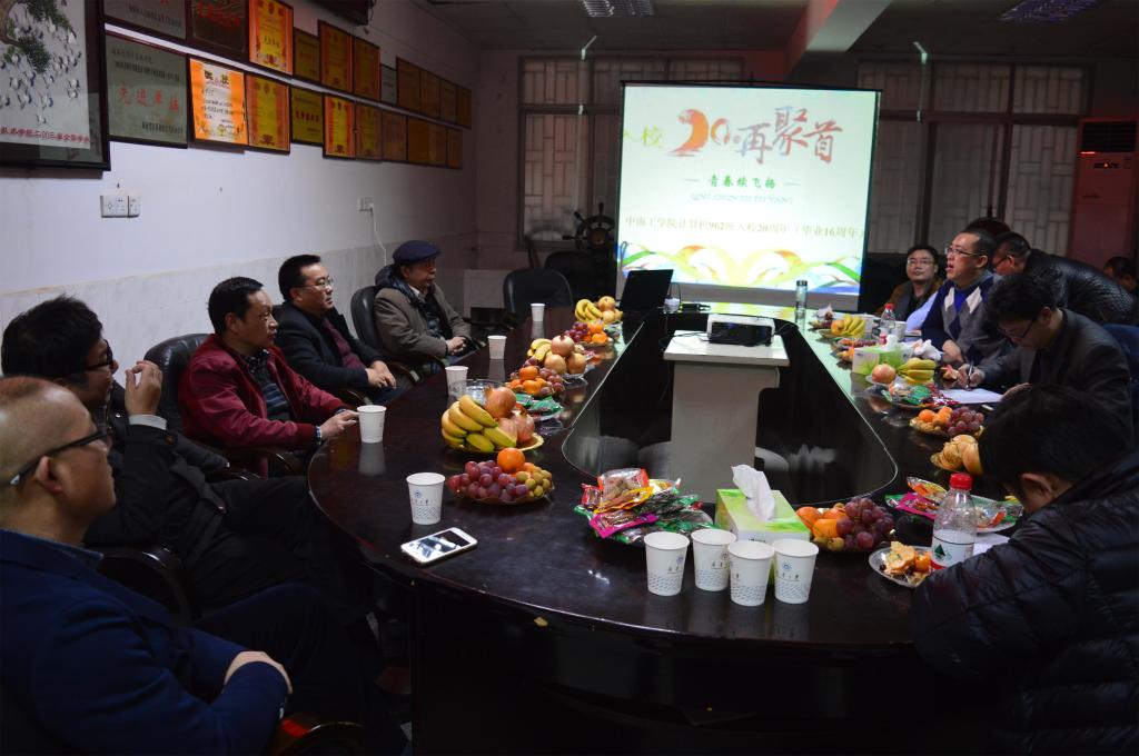 交流会伊始,首先是各位校友像各位老师汇报毕业后的打拼经历,包括学习,家庭和事业情况,这其中,有毕业后继续深造的,也不乏目前在创业征途中仍然在打拼的,也有在祖国的国防战线默默坚守的。接收来是各位老师讲话。首先是近70高龄的老教师朱天相老师讲话,他首先祝贺每位校友通过自己的打拼,走出了自己的独特的人生。指出每个人都有自己的特长,走自己适合的路才是最正确的。其次他强调,每位校友心中要时刻装着国家,想想自己的工作能不能为国家的发展建设贡献自己一份力量。最后他鼓励校友们在今后的日子中不断学习,更新自己的知识。辅导员兼班主任曾志伟老师在讲话中强调大学期间,不仅仅是学习知识,更重要的是学习思维和学习的能力,也表明了大学教育的重要性。原系主任陈也平老师则提醒校友在努力工作和学习之余要加强锻炼身体,他希望各位校友在空余时间,多多锻炼身体,这样才能在将来为国家、社会作出更大贡献。余童兰老师则和大家一起回忆了在校学习的一些情况。之后是院党委副书记卢清华老师讲话,他首先表达了对各位校友的欢迎,对校友们取得的成绩给予充分肯定,他简单介绍了学院学生工作情况,诚挚邀请各位校友在方便的时候回母校给在校的学弟学妹作就业、创业讲座,也请各位校友多提供就业信息。最后,院党委书记肖基毅作总结发言,他首先向各位校友介绍了学校学院这些年来的发展情况;然后希望各位校友可以通过一些交流平台加强和同学、学校的联系;最后,他表达了对各位校友返校的感谢和欢迎。