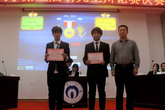 辩论赛分为开篇立论、质询、对辩、质询小结、自由辩、总结陈词六个环节。作为正方我院一辩胡杰从平时不注重小节会出大事,看问题要抓住首要矛盾这个方面点题——成大事者应当拘小节。接下来是攻辩环节,我院二辩何杨,以拘小节对于成大事来说至关重要这一关键点进行质询,语言幽默风趣,博得观众的笑容。我院三辩丁龙,思路清晰,以抓住何谓小节,何谓细节,拘小节对于成大事是否真的无足轻重,妙语连珠引得全场掌声雷动,将比赛一次次推向高潮。自由辩论过程中,选手们不失风度、面带微笑,以出色的口才、敏捷的思维令场下观众啧啧称赞。