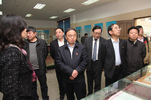 ??? 彭国甫一行在南华大学党委书记邹树梁、校长文格波、副校长吴移谋等的陪同下实地考察了学校军工文化基地、核电模型展览室、氡实验室、铀矿采冶实验室等,听取了校党委书记邹树梁作的工作汇报。
